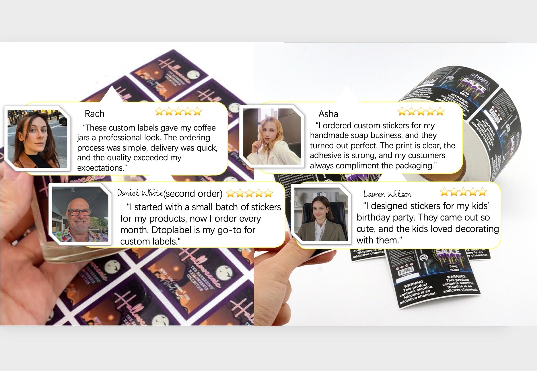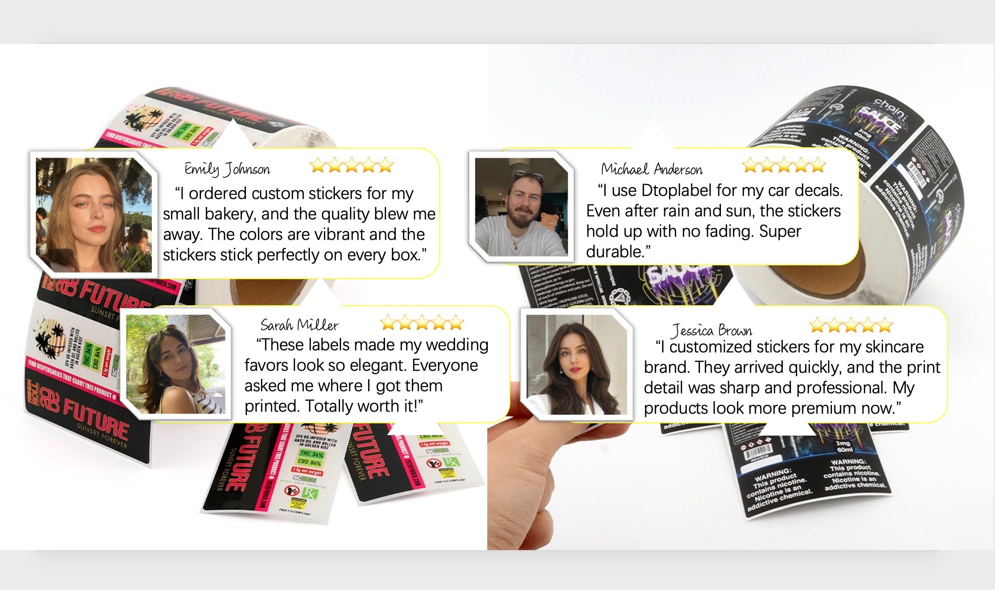 βOur customers are passionate about creativity and life π¨β¨βranging from craft enthusiasts π§΅, e-commerce entrepreneurs π», to independent coffee shop owners β and detail-oriented home makers π‘. They choose Dtoplabelβs custom stickers for handmade products, gift packaging π, or everyday decoration πΌοΈ. Every review reflects their trust and love β€οΈ for our quality and service. Letβs hear what they have to say about Dtoplabel π¬.β
