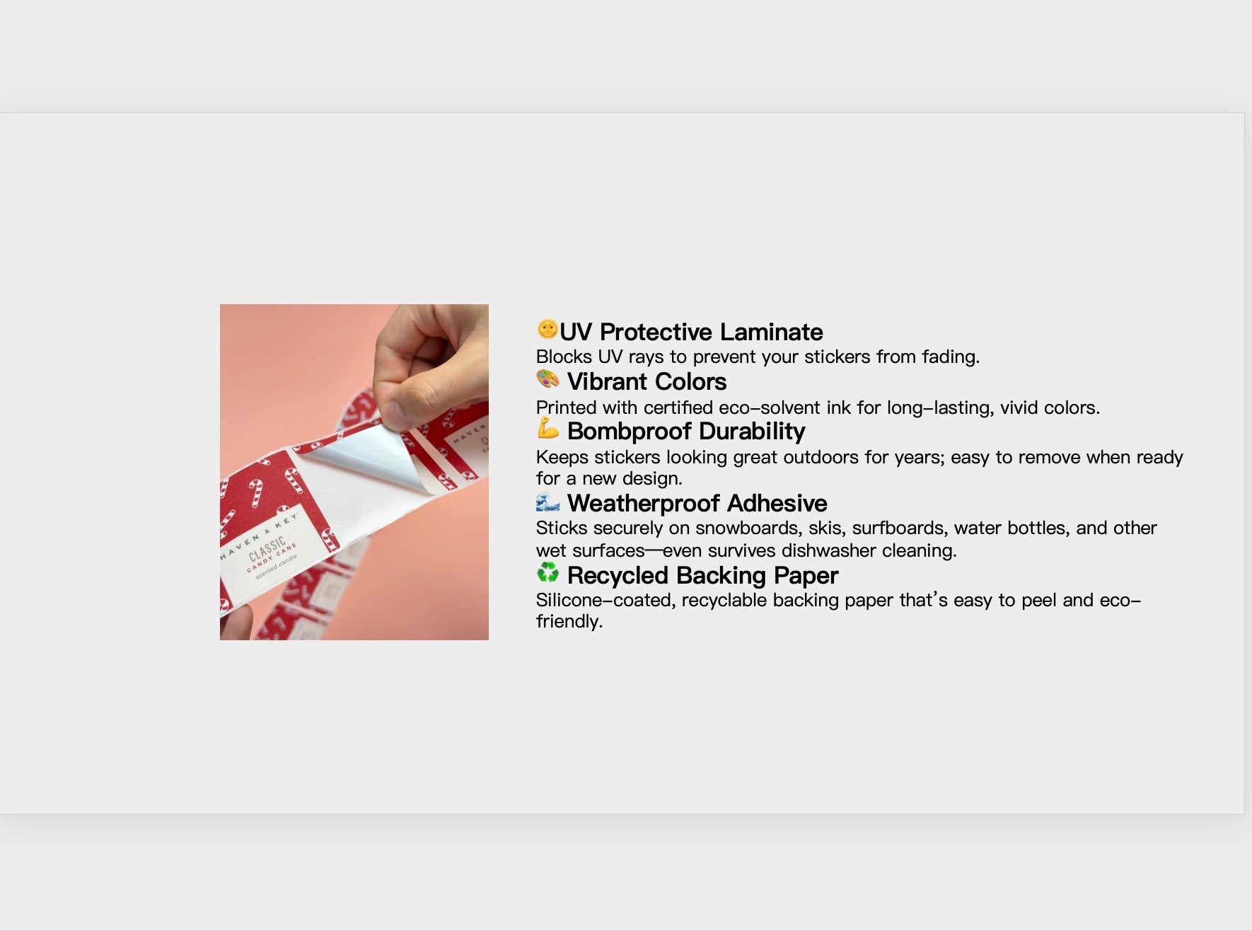 Our high-quality stickers β are designed to last and impress! Made with durable materials πͺ and printed with eco-solvent ink π±, they deliver vibrant colors π¨ that stay bright for years. The UV protective laminate π prevents fading, while our weatherproof adhesive π sticks securely on everything from water bottles to snowboards. Plus, the silicone-coated, recyclable backing paper β»οΈ makes them easy to peel and eco-friendly. Perfect for showcasing your brand, products, or personal creativity! π·οΈβ¨